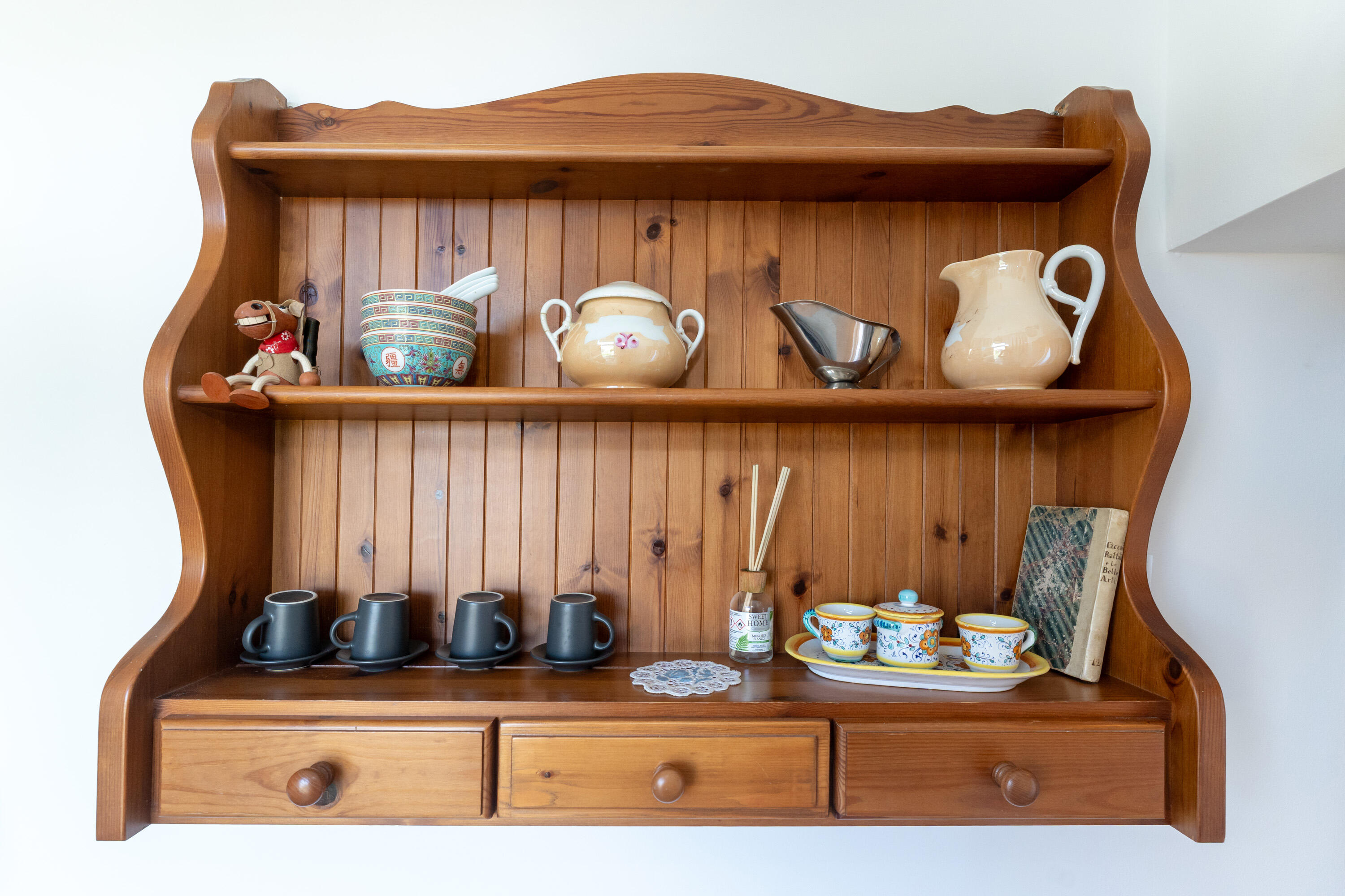 - Teakonyha hűtővel, vízforralóval, kávéfőzővel, mosogatóval, tányérokkal, poharakkal, evőeszközökkel